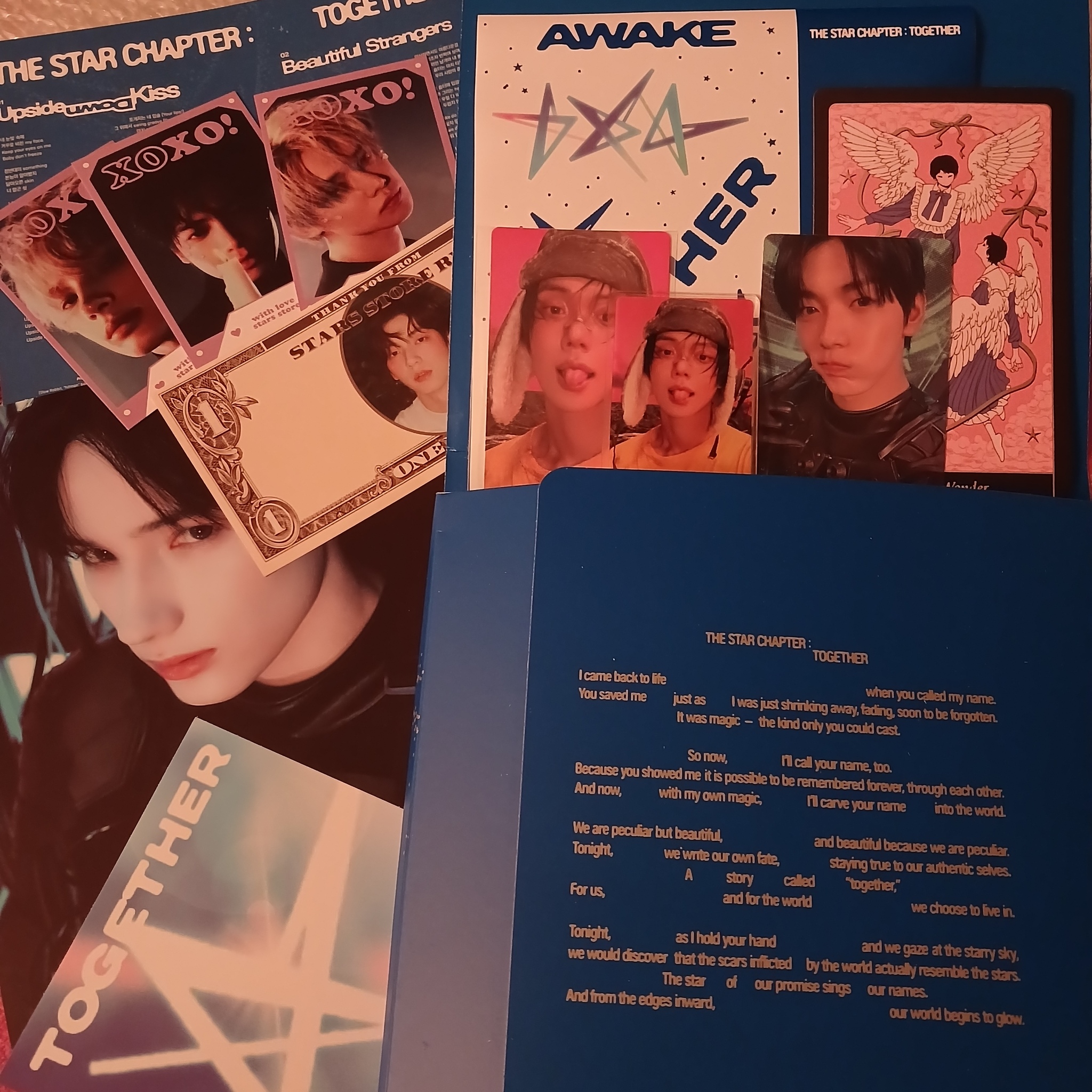 Получила свой долгожданный альбом! Приехал по срокам в хорошем состоянии. Приятным бонусом оказалась карточка моего биаса🥰 Очень интересный по наполнению и приятный по материалу (очень понравились листы фотобука, плотный глянец так и хочется листать). Есть только одна проблема - весь корешок фотобука оторвался от обложки спустя третий раз, как я его открыла (хоть и делала это аккуратно). Это не вина магазина, конечно, просто осадочек остался🥹 Но в любом случае огромное спасибо Stars store за возможность приобрести любимые альбомы! ❤️