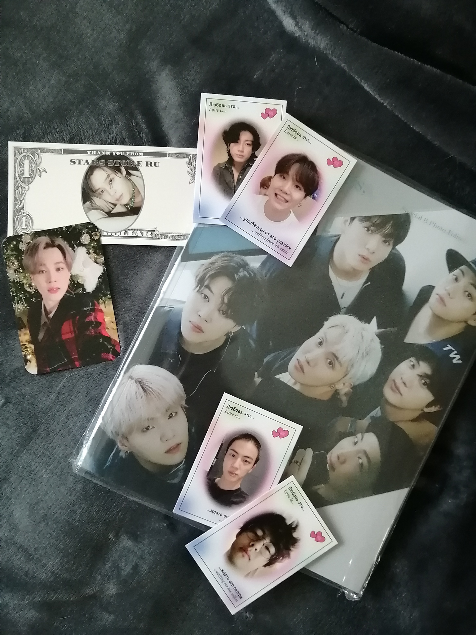 Спасибо вам 💜 фотобук дошёл ровно за 1 месяц, супер быстро! В описании не упомянут календарь, но он в комплекте, и я диком восторге! и спасибо за карточки в заказе 💜
